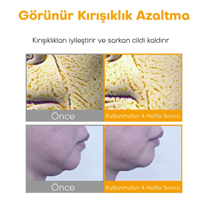 Boyun, yanak, nazolabial, alın, kaş çevresi, ağız çevresi ve göz çevresi'nde lifting etkisi! Kolajen üretimini arttıran cildin derinlerine etki eden mucize formül!